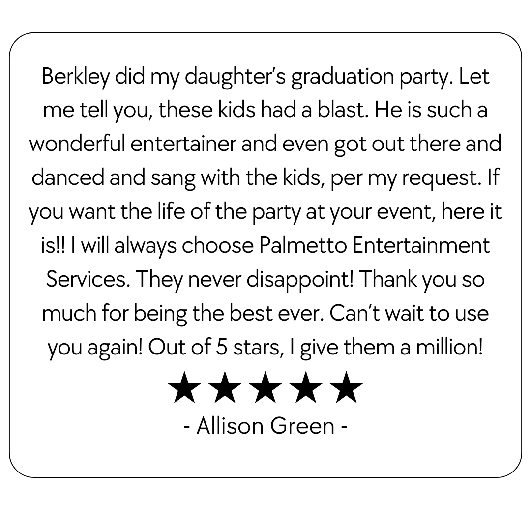 At Palmetto Entertainment, we believe every celebration deserves more than just music—it deserves unforgettable memories. With Southern hospitality at our core, we bring high standards of professionalism, energy, and care to every event we serve. Whether you’re planning a wedding, birthday, corporate event, or school dance, our team is dedicated to making it seamless, joyful, and full of life.